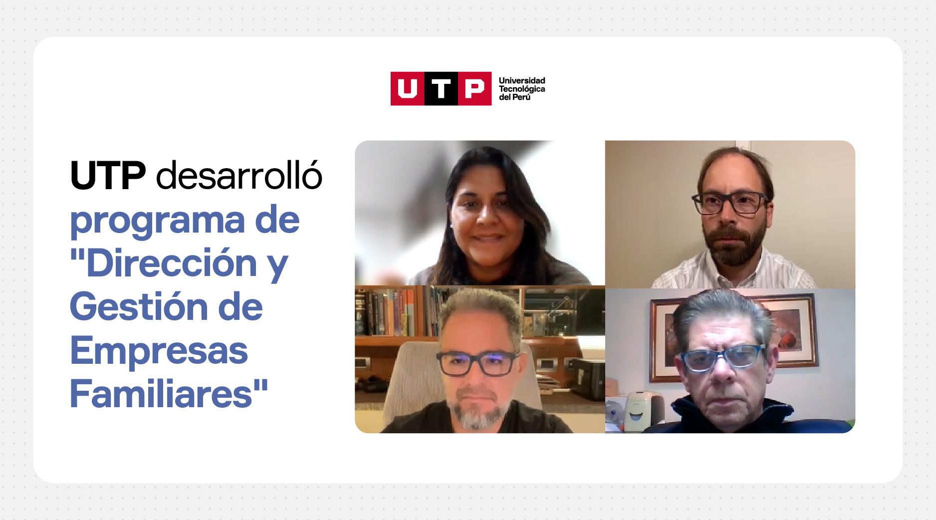 Pablo Montalbetti, Decano de la Facultad de Administración y Negocios de la Universidad Tecnológica del Perú, desarrolló el programa "Dirección y Gestión de Empresas Familiares", que estuvo dirigido a empresarios o emprendedores estudiantes y egresados de la UTP, así como a sus familiares. El objetivo fue fortalecer las capacidades directivas de los propietarios, entender y analizar la importancia de un buen gobierno familiar y corporativo, y gestionar con eficacia y alto performance para crear valor a la empresa.