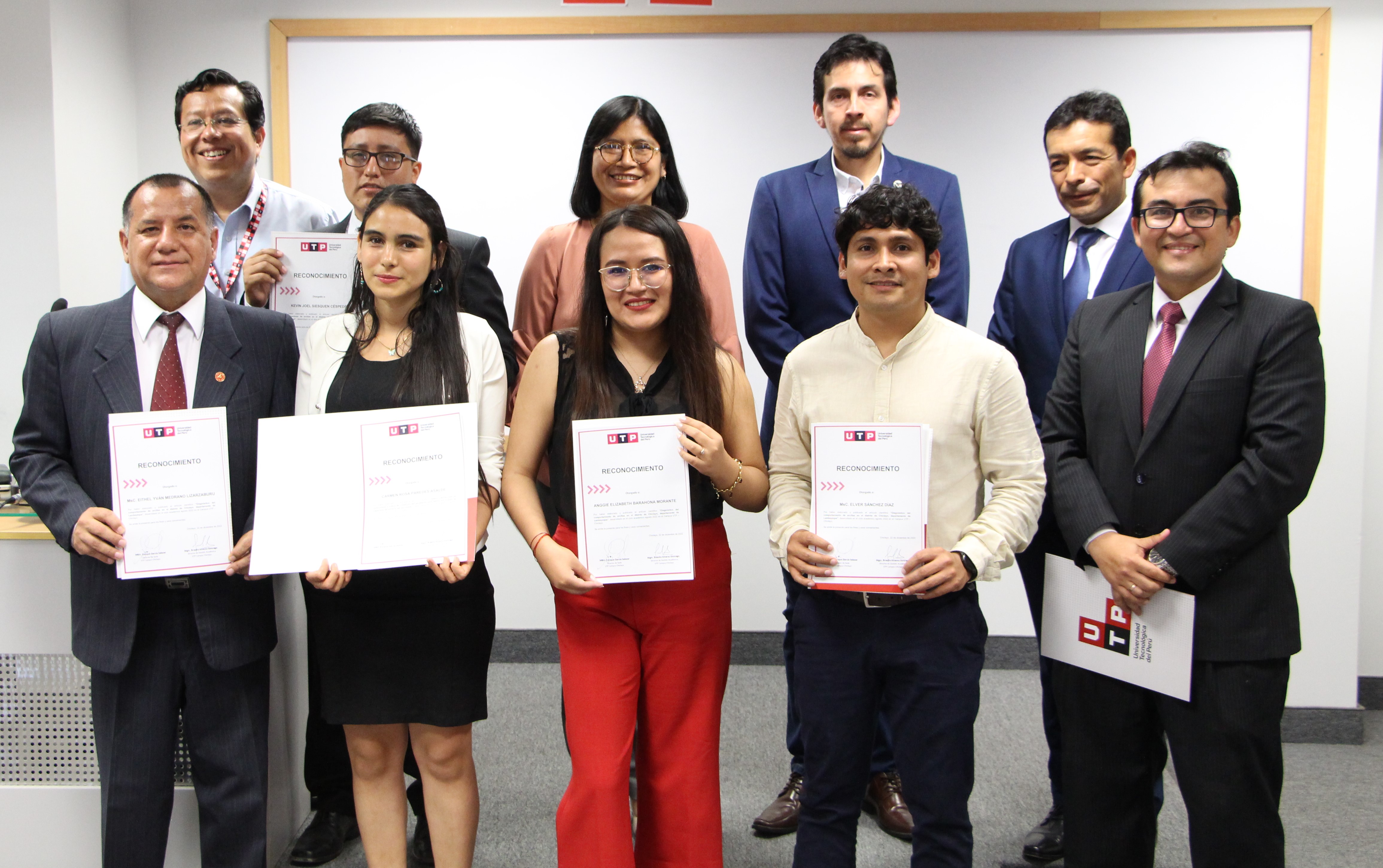 Egresados y docentes de la UTP fueron reconocidos por autoridades de la Universidad gracias a la publicación de sus artículos científicos en revistas especializadas de América Latina. En la ceremonia participaron Braulio Álvarez, director académico del Campus UTP Chiclayo, y los coordinadores Juan Esquivel y Marco Fernández.