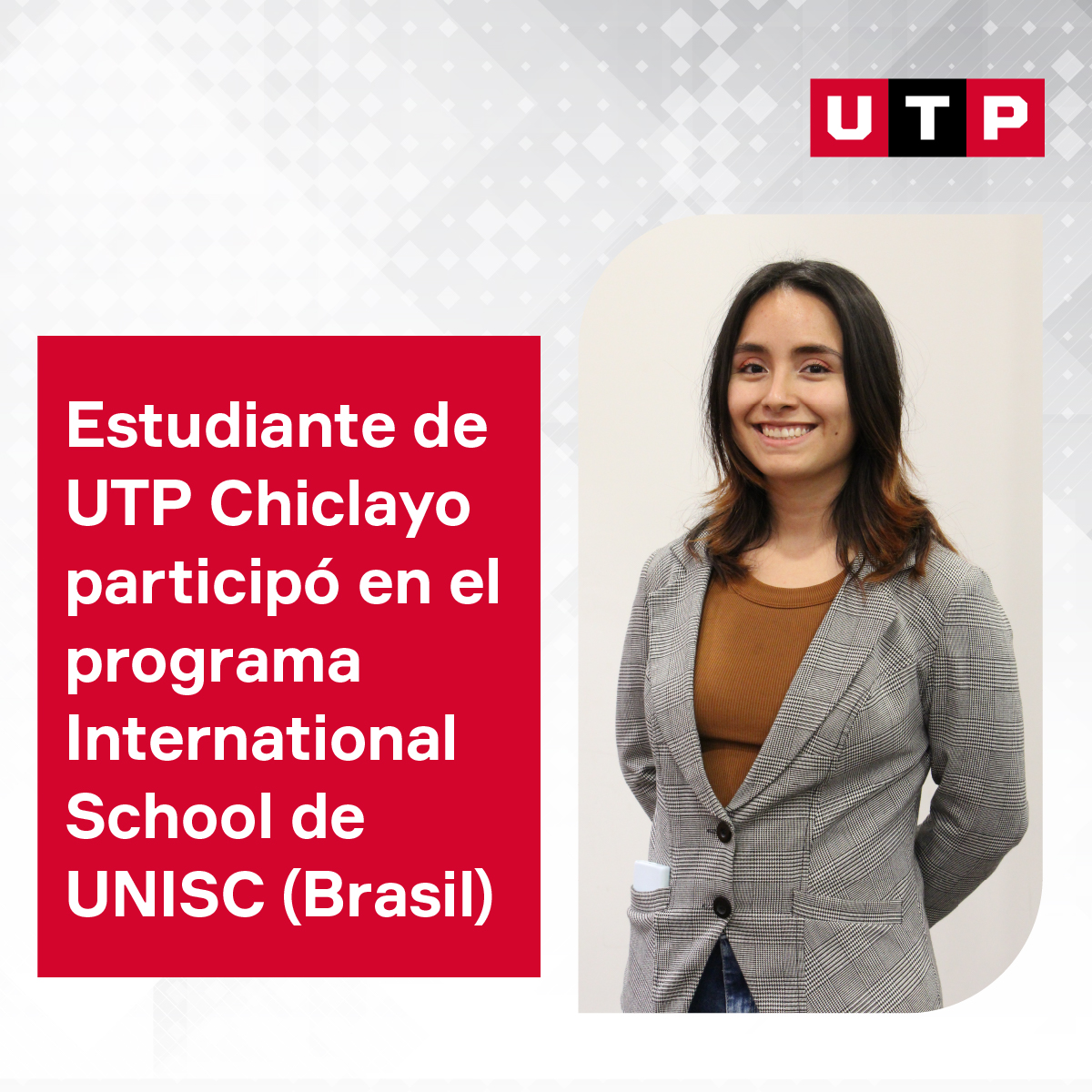 A través del programa Movilidad Internacional de la UTP, Nelly Jiménez, alumna del octavo ciclo de Administración y Marketing del Campus Chiclayo, obtuvo una beca para formar parte del programa International School de la Universidade de Santa Cruz do Sul (UNISC), en Brasil. Durante su estancia, analizó los diversos Objetivos de Desarrollo Sostenible (ODS) y sus implicancias en diferentes países.