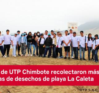 Estudiantes del Campus Chimbote de la Universidad Tecnológica del Perú (UTP) limpiaron la playa La Caleta, de la que recolectaron más de dos toneladas de desechos.