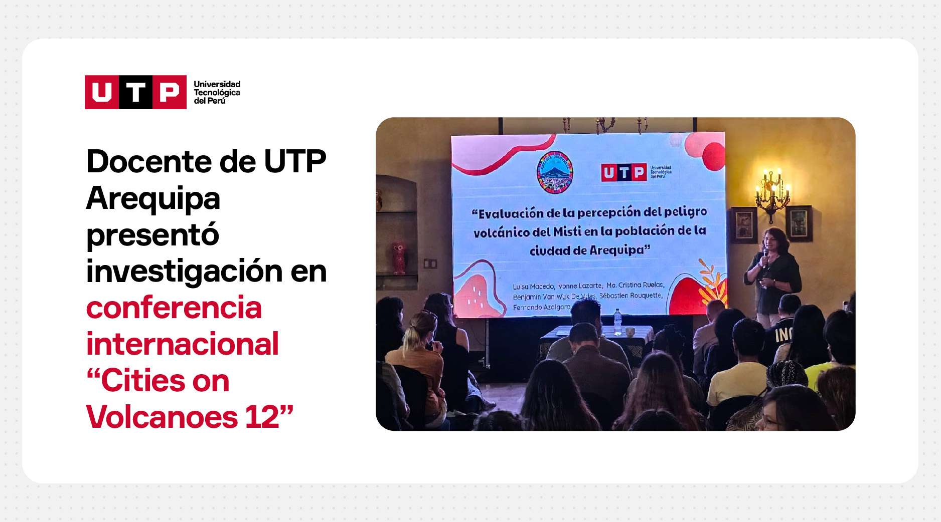 Docente de UTP Arequipa presentó investigación en conferencia internacional "Cities on Volcanoes 12"