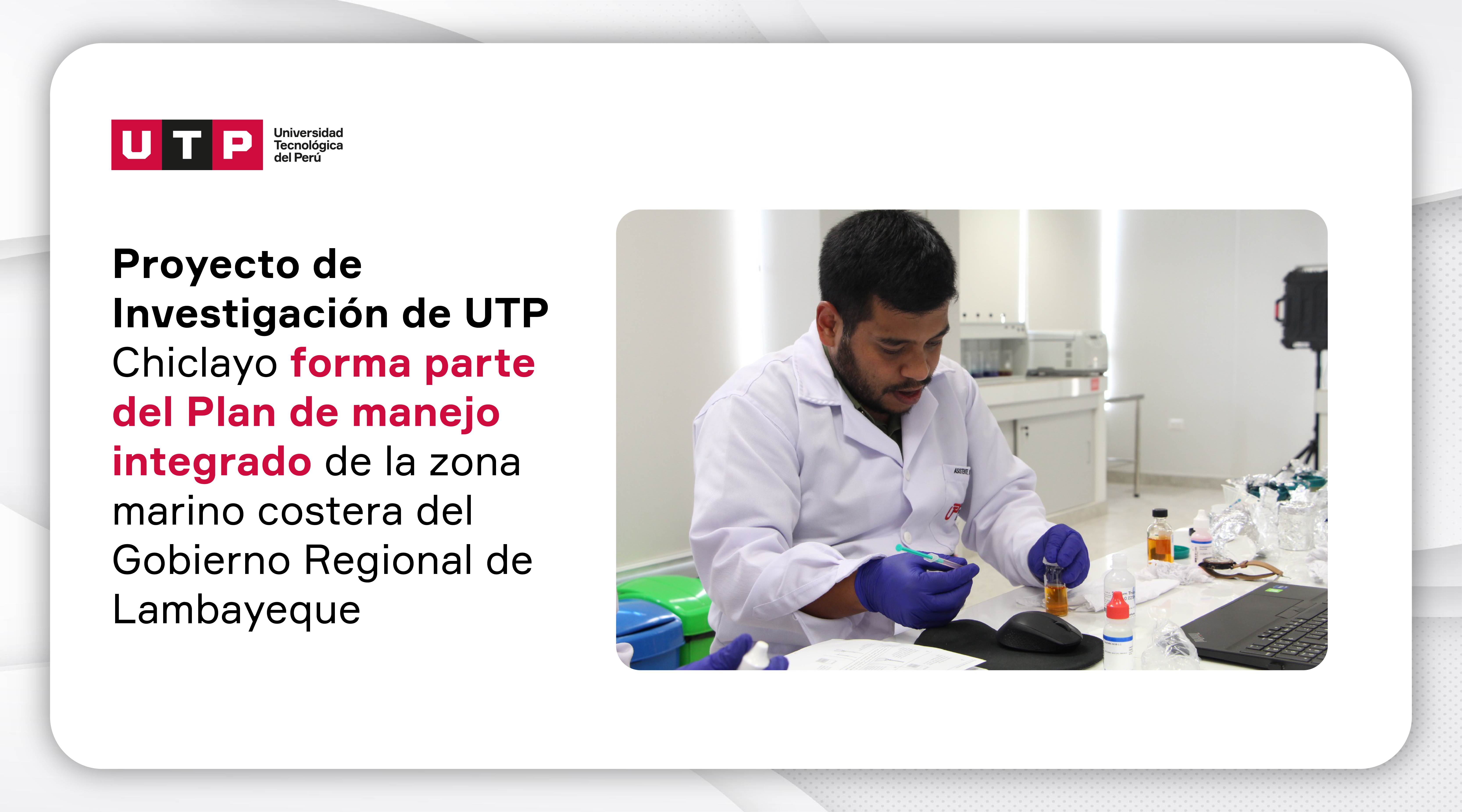 Un proyecto de investigación del Campus UTP Chiclayo forma parte del “Plan de manejo integrado de la zona marino costera – Lambayeque”, elaborado por la Gerencia de Recursos Naturales y Gestión Ambiental del Gobierno Regional de Lambayeque, que tiene por finalidad mejorar el ecosistema marítimo.