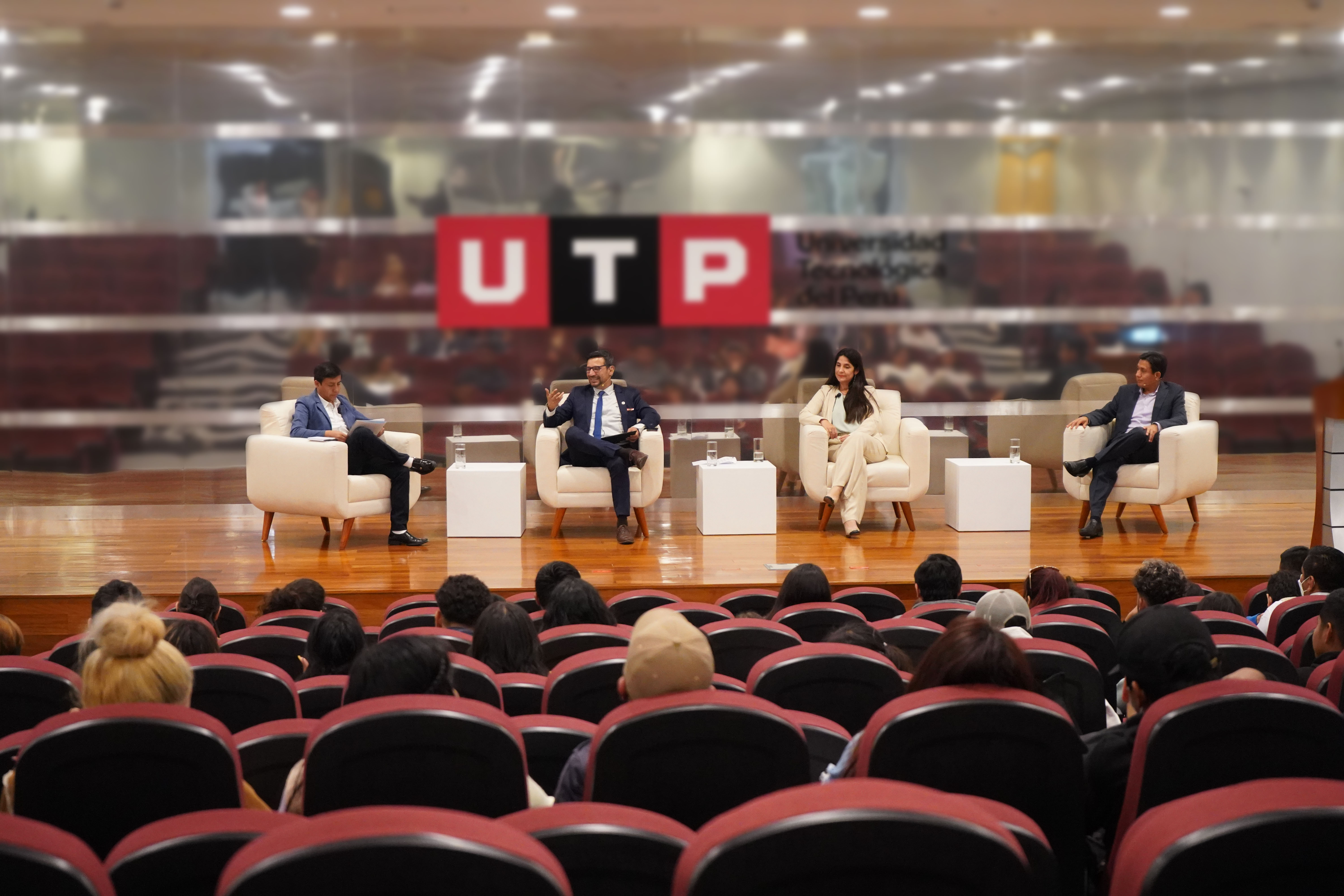 El Campus UTP Chimbote organizó el conversatorio regional “Desafíos de la gestión del talento en el trabajo híbrido” con la participación de Christian Gálvez, gerente de Personas de Siderperu; Jhonatan Gamboa, jefe de Gestión Humana de Agroindustria San Jacinto; y Viviana Vélez, consultora asociada de LHH DBM. Jhony Almendras, director del campus, también formó parte de esta actividad.