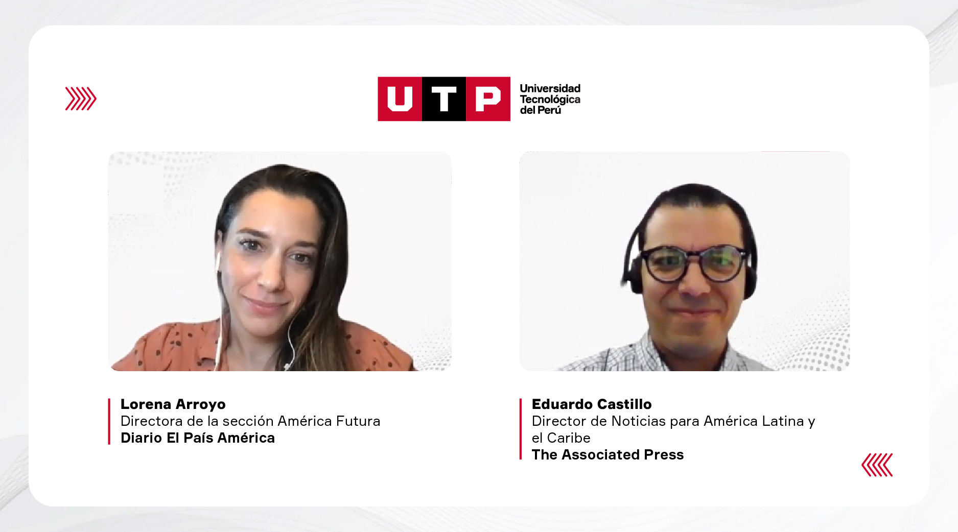 El evento estuvo a cargo de los panelistas Eduardo Castillo, director de Noticias para América Latina y el Caribe en The Associated Press (AP); y Lorena Arroyo, directora de la sección América Futura del Diario El País América.