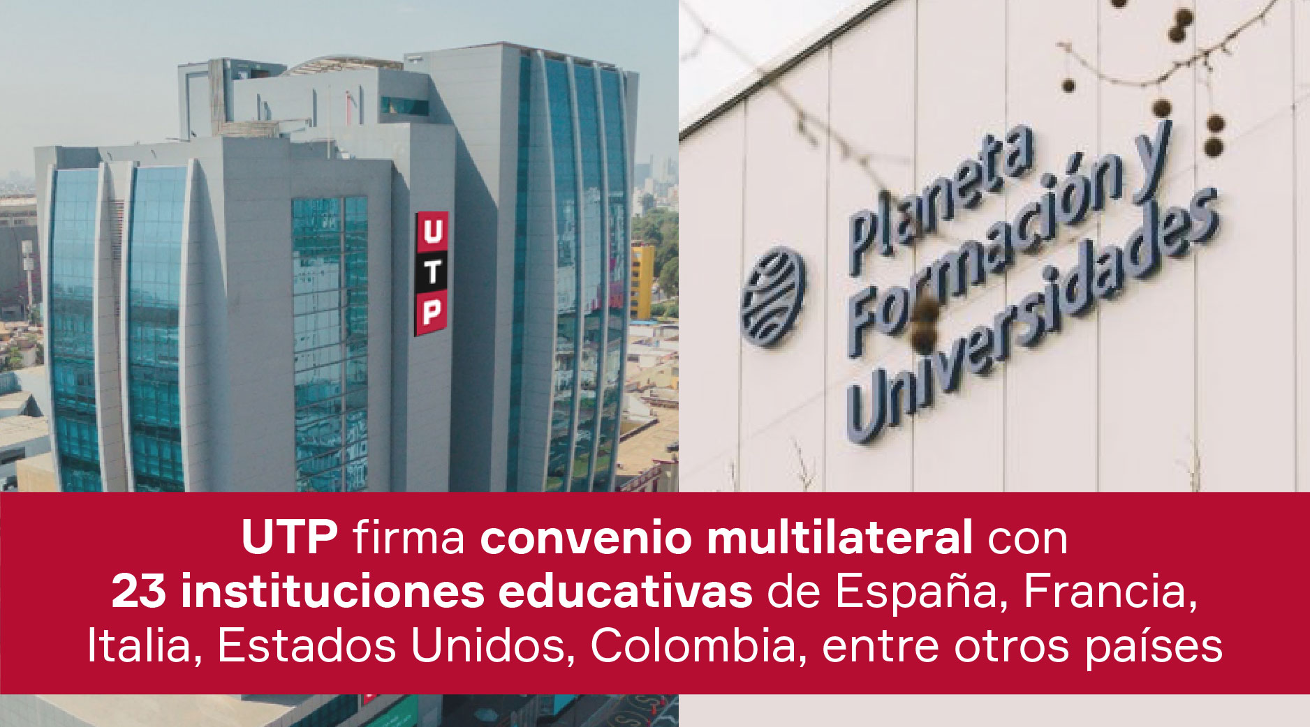 UTP y Planeta Formación y Universidades, red internacional de 23 instituciones educativas, han firmado un convenio multilateral de cooperación académica con el objetivo de contribuir al proceso de formación profesional de alumnos y docentes, realizar estudios y proyectos de investigación en áreas de interés común y organizar actividades en conjunto.