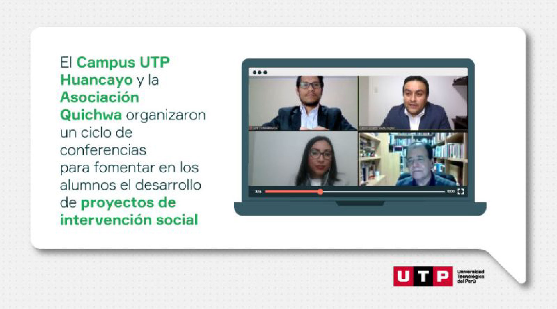 La UTP, en colaboración con la Asociación Civil Quichwa, viene realizando el ciclo de conferencias “Literacidad de futuros en el ámbito universitario”, desde el 5 de febrero, con el fin de capacitar a los alumnos para la implementación de proyectos de intervención social en Huancayo.