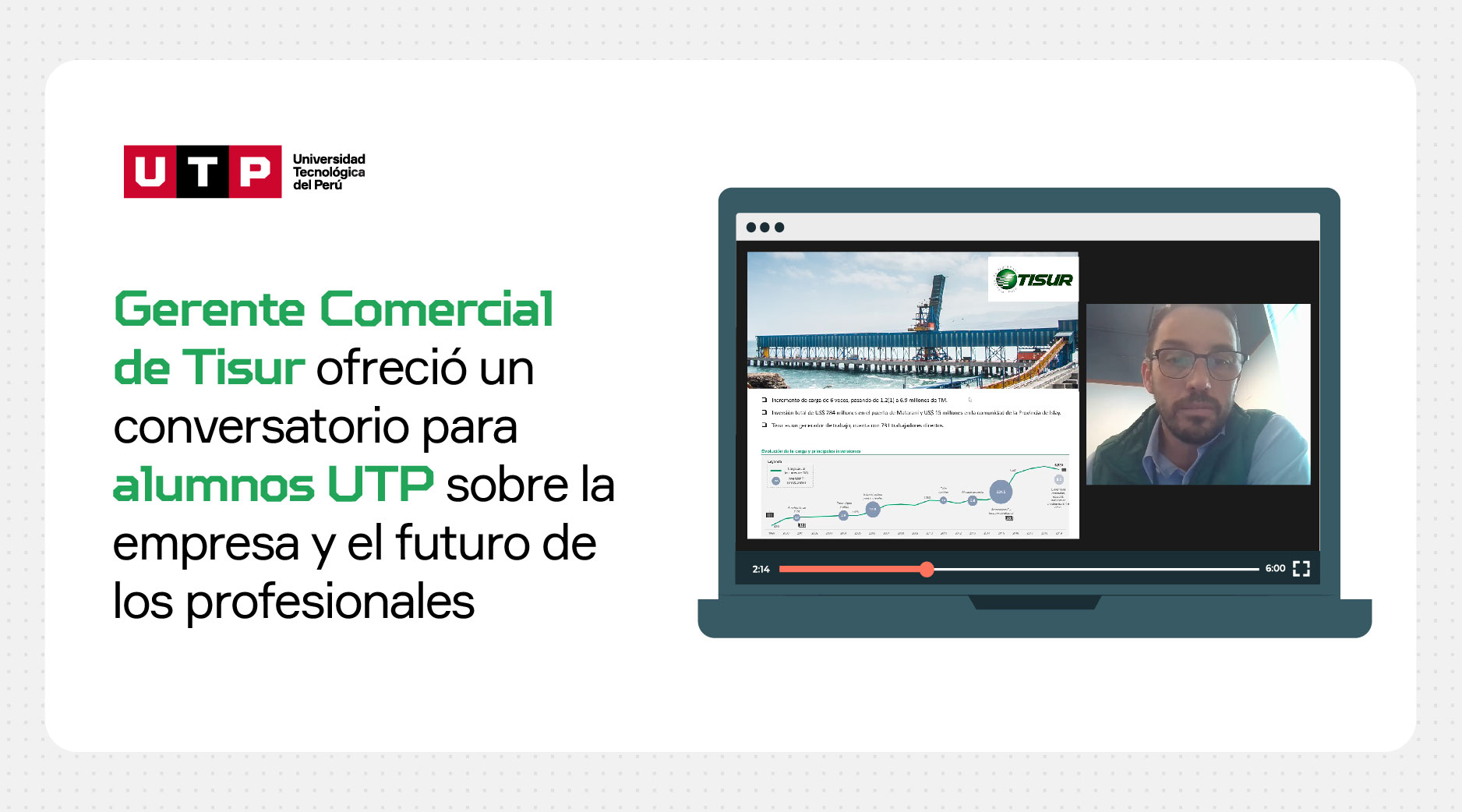 Tisur es la empresa que desarrolla, administra y opera el terminal portuario de Matarini en Arequipa. Este es de gran importancia para el desarrollo de la región, por lo que la Dirección de Empleabilidad de la UTP organizó el conversatorio “Rol Estratégico de los puertos en el comercio exterior: la experiencia del Puerto de Matarani”.