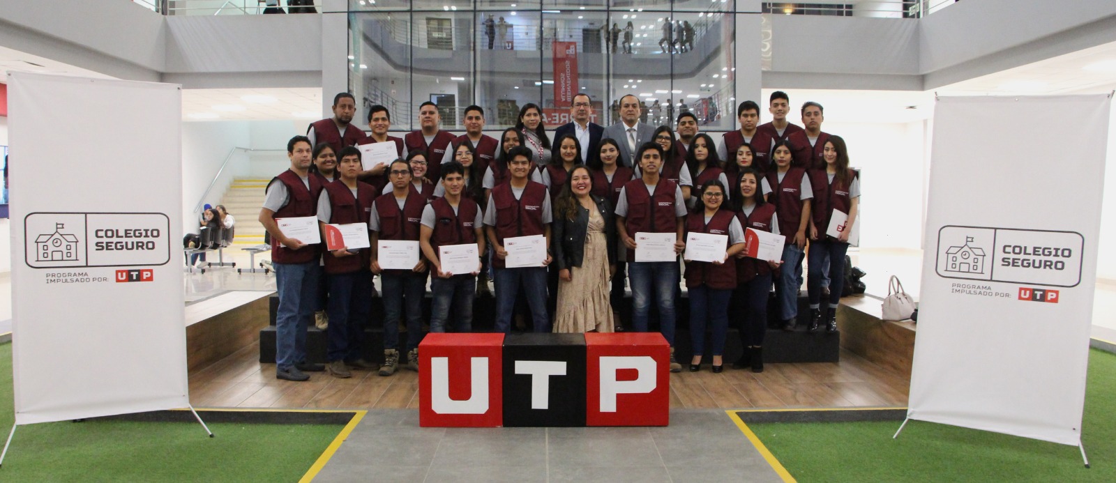 Colegio Seguro es el programa de Responsabilidad Social de UTP dirigido a Instituciones Educativas de nivel secundaria de Gestión Estatal. Tiene como objetivo que la comunidad educativa pueda responder a situaciones de emergencia por desastres naturales, actuando como agentes de atención primaria o brigadistas de primeros auxilios. Además, brindar una evaluación especializada en manejo de riesgos según infraestructura. Este programa aporta al ODS 13 Acción por el clima.